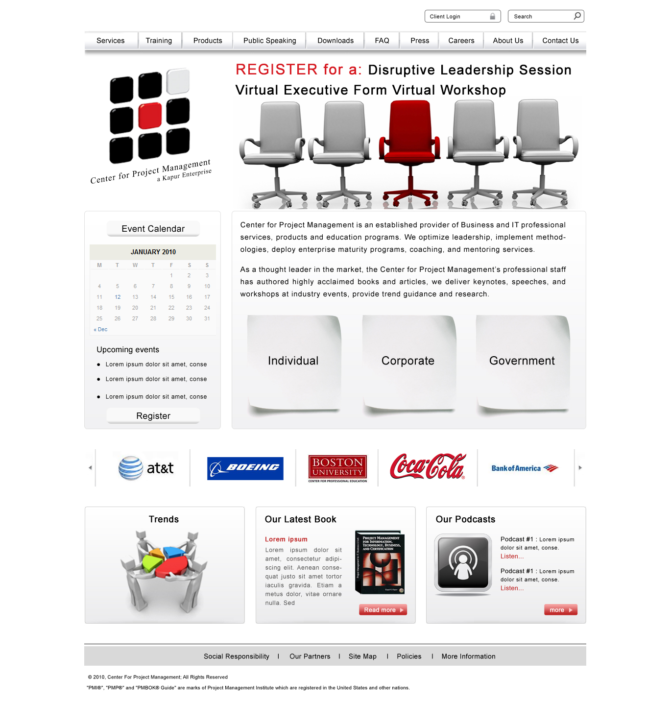 5. WP Corporate themes one of the largest sites with more than 150 pages, custom events page and calendar, client login section for downloads, video posting, audio podcasts section, clients logo, various contact forms like job offers, contact us etc.